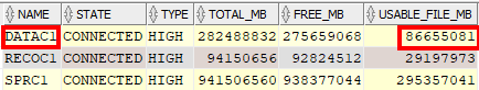 I wasn’t sure how 20% of 150 TB came out to be almost 300 TB; the usable space for DATA and RECO looked fine. I ignored that for the moment, and moved on with creating the test master and clones.