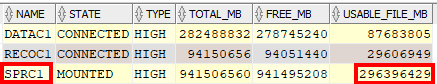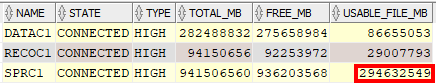 I was once again puzzled by the free space reported in the sparse disk group SPRC1: