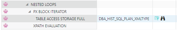 From this point on, I created a local copy of DBA_HIST_SQL_PLAN to avoid the complications of internal database links and the data dictionary. The first thing I tried was to create the copy of DBA_HIST_SQL_PLAN with an XMLTYPE data type instead of CLOB: