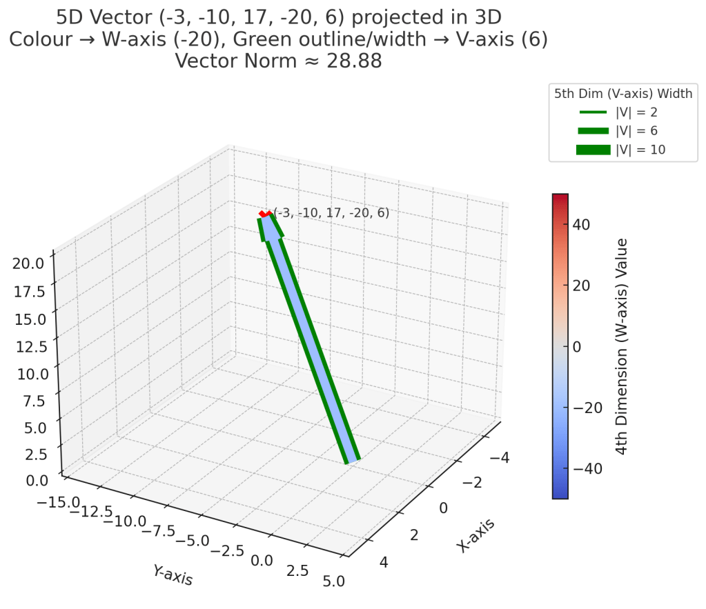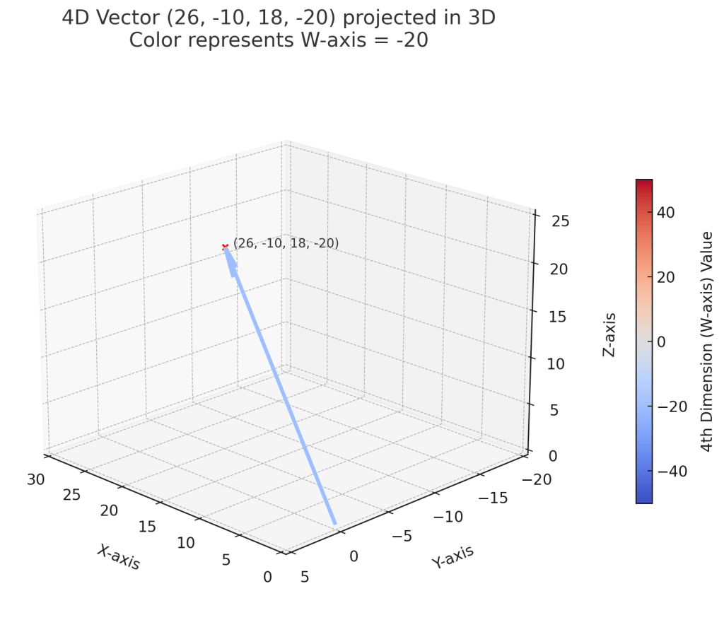 Visualizing how vector math works using a graph of the vector coordinates helps understand the concepts and even the math behind it. For 2-D through 5-D, I enlisted the help of ChatGPT to create a few graphs.